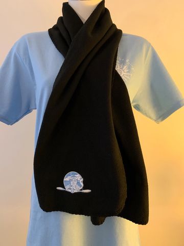 Keep yourself cozy with our fleece scarves embroidered with our Eastern PA lady pilot logo